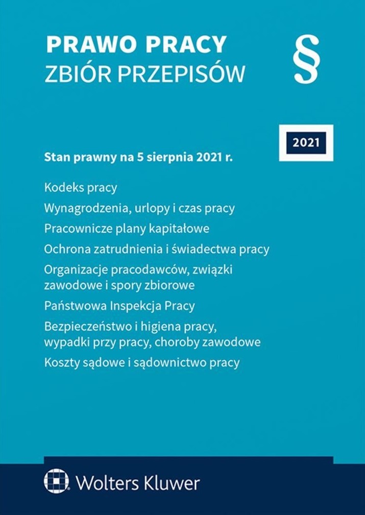 Prawo pracy : zbiór przepisów 2021 / redaktor prowadzący Mariusz Kurzyński. - 34. wydanie, stan prawny na 5 sierpnia 2021 r. - Warszawa : Wolters Kluwer, 2021. - 1031, [4] strony ; 21 cm.